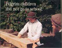 Pilgrims of old, doing Pilgrim chores, eating Pilgrim food,