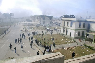 Benghazi, Libya's second-largest city, resembles a war zone, as protesters have stormed police stations and government buildings and security forces have fired into crowds. In that city, however, some military units have switched sides and joined the protesters. Some people were seen to wave the flag of the monarchy, ousted by Gadhafi and others in a 1969 coup.
