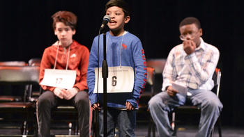 Participants make liberal use of the national bee's official study booklet, Spell It!, which is published by Merriam-Webster. Regional bees use a the School Pronouncer's Guide, which incorporates the entire text of Spell It!, along with a selection of other words from Merriam-Webster's Third New International Dictionary. Regional bees consist primarily of round after round of contestants' being asked to spell words correctly, with numbers of remaining contestants dwindling based on incorrect answers. The national bee, which is effectively a championship, has a slightly different setup. In Round One, contestants take a computerized test that features prompts to enter correct spelling words and also prompts to answer multiple choice vocabulary questions. Round One was previously a written test, with contestants responding to verbal prompts. The current, computerized format began in 2013. Round Two and Round Three are oral rounds, with contestants speaking into a microphone on stage to spell a word correctly. Contestants get two minutes into which to speak their answer; before they do so, they may ask judges for the following:
