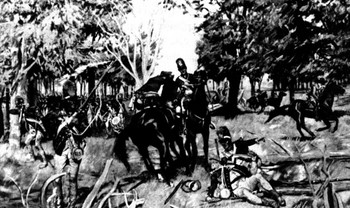 Tecumseh had left his brother, Tenskwatawa (The Prophet), in charge of things, with the specific instruction that no attacks on Europeans were to be made until Tecumseh got back. The Shawnee chief wisely saw that he didn't have enough men to defeat the European settlers. The Prophet disobeyed his instructions and gathered a war band at a place called Tippecanoe. On November 7, 1811, The Prophet led his men into battle against the Americans, who were commanded by Indiana Territorial Governor William Henry Harrison. The result was a resounding victory for Harrison and his men. When Tecumseh returned and saw what his brother had done and also what the Americans had done, he was angered beyond belief and determined to fight the Americans at every turn. A year later, when American soldiers were fighting British soldiers again, in the War of 1812, Tecumseh and his men joined the British side and fought against Americans in the Lake Erie area. American forces under Oliver Hazard Perry defeated a joint British-Native American force in the Battle of Lake Erie, and the united forces retreated. Harrison, who was also in the area, attacked the retreating forces, at the Battle of the Thames River. In the melee, Tecumseh was killed. (The Prophet, on the other hand, went to Canada, where he survived the entire war, and then moved further west, to Kansas, where he died in 1826.) One Native American chief who was very successful at stopping American settlement in the Ohio Territory was Meshikinquah, or Little Turtle. The head of the Miami nation led a coalition of Native American warriors who were adept at defeating American settlers. In one famous battle in 1771, he and his men massacred an American force under the command of General Arthur St. Clair, who was also Governor of the Northwest Territory. A force of 1,000 Native Americans attacked a force of 1,300 Americans. Little Turtle and his men killed 602 Americans and wounded 300 more, while losing only 66 dead and a handful injured. It was one of the most devastating defeats ever by Native Americans over Americans, three times as many dead as under General George Armstrong Custer at the more famous Battle of Little Bighorn. In response to this, American General George Washington sent General "Mad" Anthony Wayne and a force of 2,000 men out to the Ohio Territory. This decision ultimately turned the tide, since Little Turtle, seeing the superior numbers coming at him, decided to talk peace. The other tribe chiefs in the coalition Next page > The Rest of the Story > Page 1, 2