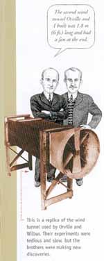 The one thing this book has that I really enjoy is the "Talking Orville and Wilburs." This is a wonderful device that, in effect, lets the Wright Brothers tell their own story. Time and again, the pictures that illustrate the narrative are themselves accompanied by a picture of Orville or Wilbur (or sometimes both), complete with a cartoon-like text bubble containing a description of the events as if they were being described by the Wrights themselves. The graphic at left is a good example of this. You can see, in the middle, one of the wind tunnels the Wrights built. Underneath is a description of the wind tunnel. But we also get pictures of both brothers, along with what Wilbur might have said if he were the one describing the wind tunnel. It gives the book a kind of "We're telling our own story" feel, and this device succeeds in a a great way, making the intended audience (kids and their parents or teachers) feel like the story is very real. Too often, in stories about the Wright Brothers, the focus is on Kitty Hawk and of the technical details of the flights and of the difficulties the Wright Brothers faced in getting their idea off the ground. This book avoids all that by making the story of the airplane enjoyable, while sacrificing none of the important details. Graphics courtesy of Kids Can Press |