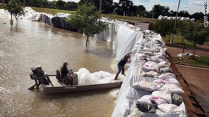 The Coast Guard has taken the extraordinary step of closing the Mississippi River at one stage in order to prevent flooding further downstream. At the port in Natchez, Miss., barge traffic is at a standstill, both to keep downstream levees from being overwhelmed and from fears that the barges would be unable to get around safely in the elevated water levels. Port officials had no clear idea when the river traffic would resume. That the river is closed at all is indicative of the scope of the disaster, as port officials estimate that lost revenues could exceed hundreds of millions of dollars. The Mississippi River, swollen beyond normal capacity by frequent rainstorms and higher than usual snowmelt, has seeped into surrounding land in several states along the long route to the Gulf of Mexico. Residents of Louisiana were on high alert, expecting displacement similar to those suffered in Tennessee, Mississippi, Arkansas, among other states in which a total of nearly 3 million acres of farmland has flooded. The water level at Natchez was already three feet higher than the record flooding of 1937, and the crest wasn't expected until the weekend. An intense watch on levees continued, staffed by engineers and, in some places, inmates. In Louisiana, engineers have released water from the Morganza Spillway, opening it for the first time since 1973 and letting the floodwater flow through the bayou and away from Baton Rouge and New Orleans, where river levels have crested but show no signs of lowering any time soon. Similar flooding has inundated Vicksburg, Miss., threatening thousands of Civil War-era graves, and Memphis, Tenn. Thousands of people have fled their homes, taking refuge with family and friends or in temporary shelters. |