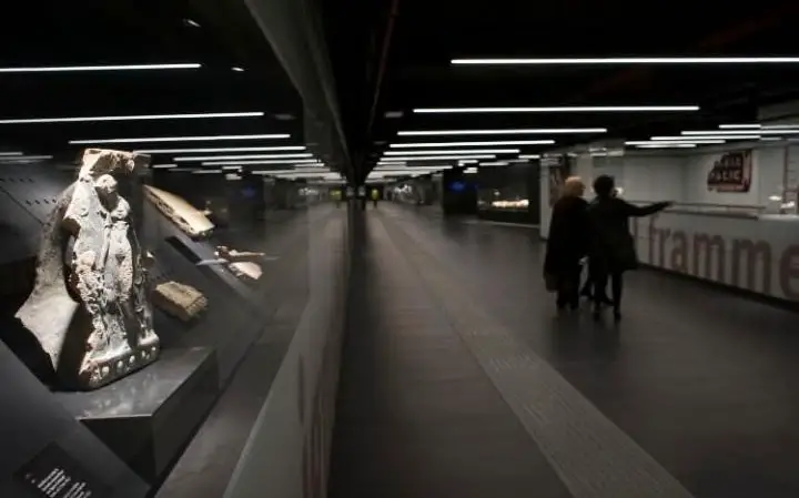 A newly completed Roman metro station sports a museum showcasing some of the archaeological treasures unearthed during the station's construction. Among the artifacts discovered were relatively common items like marble statues, amphorae, gold coins, and perfume bottles. Also on display are a number of 2,000-year-old peach stones and some bronze fish hooks from a very old fish farm. Dates printed on the station's walls describe key events in the republican and imperial history of the city, all the way up to the end of the Western Roman Empire, in A.D. 476. The San Giovanni station, one of 30 stations on Rome's new underground rail line, is ready to open, but the rest of the line is not, so the public will not be able to experience the archaeology museum on a daily basis until the end of the year. The new line will be the Metro C, designed to take some of the load off the existing lines, Metro A and Metro B. Construction on Metro C began more than a decade ago and has been stalled periodically by archaeological discoveries. The San Giovanni station is not the only Metro C station to include a museum. The Amba Aradam station will show off remains of a barracks used by the Praetorian Guard, the emperor's personal bodyguards. |