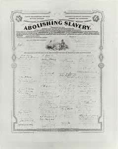 The proposed amendment then went to the state legislatures. Northern states quickly ratified the proposed amendment, beginning with Illinois a day after the House approved and carrying on through Massachusetts a week later. Virginia, the first Southern state to ratify the amendment, gave its approval on February 9. Other states, North and South, gave their approval as well. When Georgia became the 27th state to approve, on Dec. 6, 1865, the amendment became law. Secretary of State William Seward proclaimed it the law of the land on December 18. Section 1. Neither slavery nor involuntary servitude, except as a punishment for crime whereof the party shall have been duly convicted, shall exist within the United States, or any place subject to their jurisdiction. |