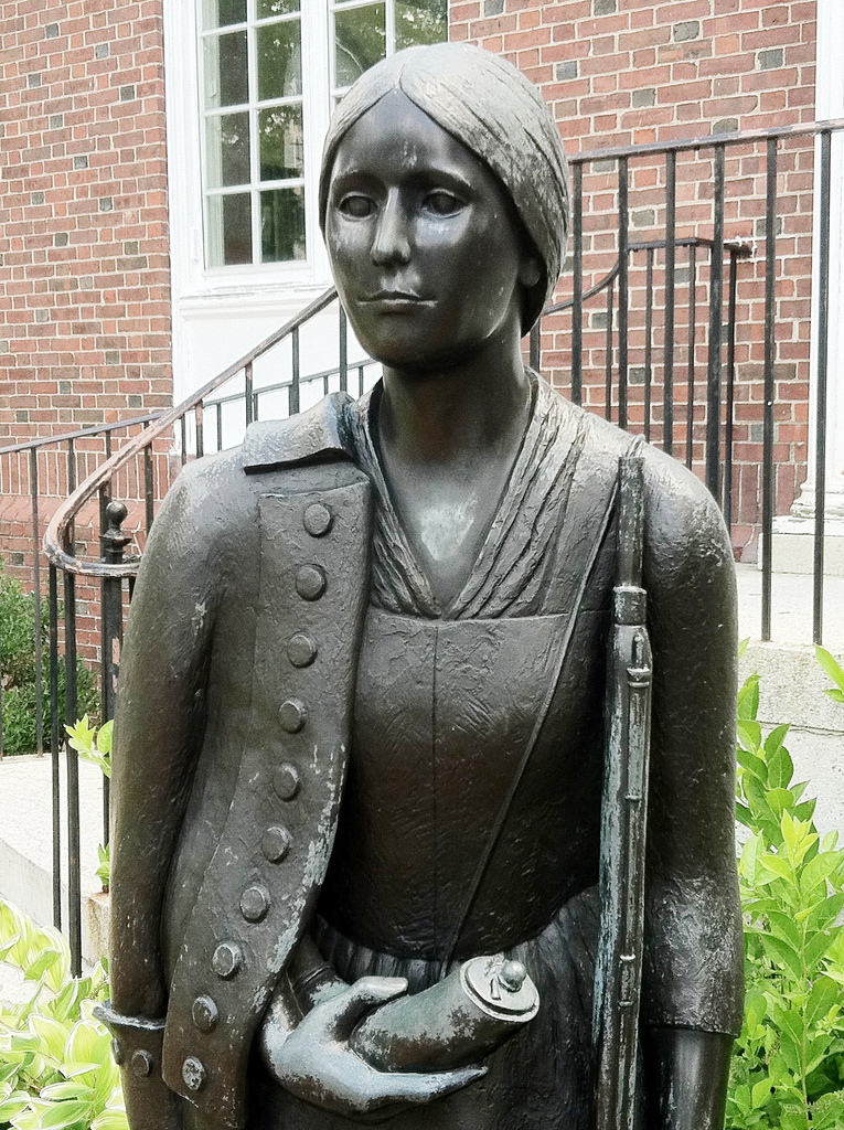 The Bay State was a hotbed of revolutionary activity during the struggle against Great Britain that became the Revolutionary War. Outraged Bostonians (and others) dumped British tea into the harbor at the Boston Tea Party. The first official battles of the war took place in Lexington and Concord; at the Battle of Bunker Hill, Patriots were told not to fire on the Redcoats until they "saw the whites of their eyes." Also from Massachusetts was Deborah Sampson (right), the first woman to receive a military pension: She dressed as a man and saw combat at Tarrytown, N.Y., in the waning days of the Revolutionary War.