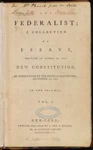 Each essay began the same way, "To the People of the State of New York," and ended the same way, signed "Publius." The identity of "Publius" was not a complete secret. Many in New York and elsewhere knew that Hamilton, Jay, and Madison were behind the efforts of The Federalist. An 1802 book version named the authors for the first time. At times through the years since the essays first appeared and throughout the publication of subsequent editions, disputes over authorship have arisen. Historians have generally agreed on all of Jay's essays and most of the others. Both Hamilton and Madison claimed authorship of a few, and some scholars still disagree on the extent to which either or both contributed to specific essays. The essays that make up The Federalist (as it was called until the 20th Century, when scholars beginning adding the word "Papers") generally had one central theme each, although some themes carried over into multiple essays. In the first essay, Hamilton laid out the six topics that would be covered: 1. "The utility of the UNION to your political prosperity" Essays 2–14 covered the first topic. Essays 15–22 covered the second topic. The third topic featured in essays 23–36. Numbers 37–84 covered the fourth topic. It was left to the final essay to cover the final two topics. |