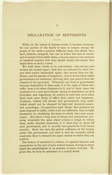 The Seneca Falls Convention was a gathering of Americans from around the country to further the cause of women's rights, including the right to vote (or suffrage). The convention took place on July 19 and July 20, in 1848, in Seneca Falls, N.Y. Two of the leaders of the women's suffrage movement, Elizabeth Cady Stanton and Lucretia Mott, had attended the Anti-Slavery Convention in London in 1840. They and all other women who attended were denied the opportunity to take part in any of the discussions; in fact, the men forced the women to sit behind partitions, as if they weren't there.