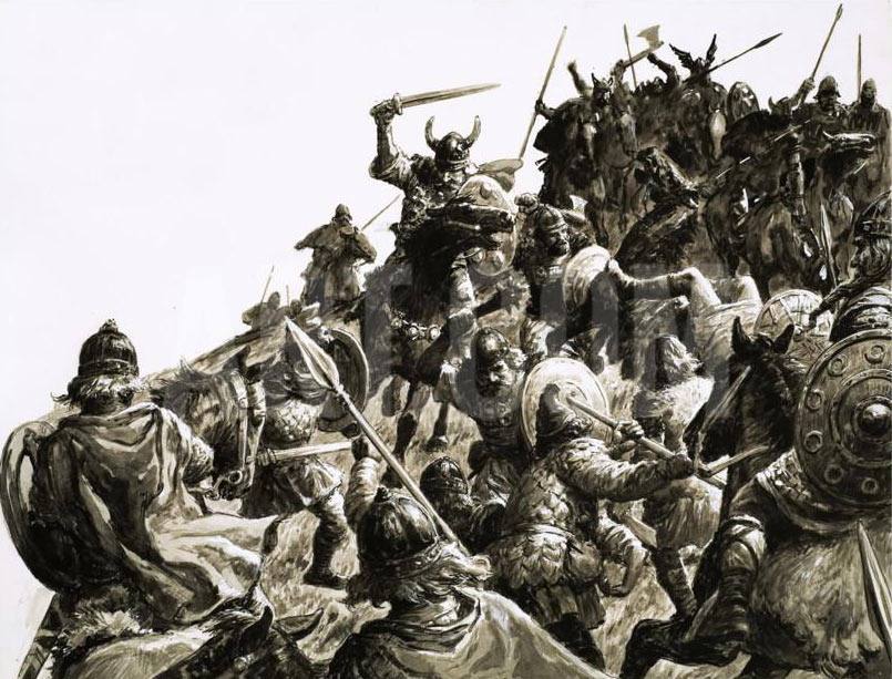 Early in the morning, the Danes set out to seize a hill that would give them command of the surrounding area. Alfred saw this and saw the need to move to intercept. Casting about for an order to attack, he found that his brother the king was busy leading his half of the army in a prayer meeting. Putting immediate need ahead of possible divine intervention, Alfred spurred his men on and engaged the enemy, charging up the hill with abandon. Æthelred and the rest of the English force arrived a bit later, and the two halves became one.The battle lasted most of that day and at the end of it, it was the Danes who were retreating. Alfred had seized the initiative and gained for his people, his brother, and himself a great victory. It was a relatively small victory in the grand scheme of the ongoing struggle, but it was a victory all the same. One thing that historians cannot agree on is the exact location of the battle. The surrounding area has been built on and over for several centuries now, making it more difficult to pin down which hill it was that the Danes seized–and then lost–on that day. |