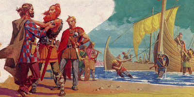 Gildas writes that a council was convened and the result was an instruction to Vortigern to go and get some Germanic help, just as the Romans had done in years past. Many foreign auxiliaries had served along Hadrian's Wall and elsewhere throughout Roman Britain. Slavery was a prime source of labor in the Roman realm, and many of those enslaved came from northern Europe. Tradition says that Hengist and Horsa, who were brothers, and a select group of soldiers landed at the Isle of Thanet, off the coast of Kent, with the express purpose of helping Vortigern turn back a northern invasion. And this is what happened, for a time, anyway. Part 3: Desperate Times and Measures |
