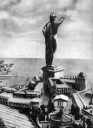 The Colossus was made by a man named Chares, whose teacher had built a 60-foot-high statue of Zeus. Historians tell us that Chares started out by making a model of the statue, then working his way up to larger versions. It stood proudly at the entrance to Rhodes harbor for 56 years, until an earthquake broke it into pieces. For hundreds of years after that, the pieces lay where they fell, symbols of the city's former glory. Sometime in the 600s A.D., Arabs conquered Rhodes and broke up the statue's pieces. Stories of the time say that it took 900 camels to cart away all the stone, iron, and bronze that once made up the Colossus of Rhodes. First page > The Story Behind the Statue > Page 1, 2 |