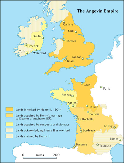When Richard Plantagenet became King Richard I, he set about raising money and men to take part in the Third Crusade, one of a series of Christian campaigns to win back control of the Holy Land, which had been absorbed by the Muslim expansion in the few centuries since the death of the Prophet Muhammad. While Richard was away, John tried to find support for overthrowing his brother and installing himself as king. The rebellion went nowhere, and John was viewed with suspicion by many in England. When Richard died, however, in 1199, John was proclaimed king. The other claimant to the throne at that time was Arthur of Brittany, John's nephew and a son of John's brother Geoffrey. Arthur had the support of the French king, and these two men united to make life difficult for John's reign. When John was crowned king, England had control of large parts of what is now France; this was referred to as the Angevin Empire. Early on in his reign, John made peace with the French king Philip II, in the Treaty of Le Goulet. This solidified the English hold on French lands for a time. However, the peace didn't last long, for a variety of reasons, including French complaints about John's instructions for treatment of French prisoners. The battles started anew, and French troops won a series of battles during the next few years, resulting in an eventual French re-possession of nearly all lands once owned by England. During and after these battles, John proclaimed a series of new taxes that the English (landowners, especially) were required to pay to help finance the war. The king also was more easy to forgive debts owned by people he favored and, at the same time, be more insisting that those he disliked pay back all that they owed. This sort of favoritism gained the crown money to finance the ongoing wars but increased resentment among some key nobles who had lots of land and power. John as king took a keen interest in government and laws. He followed in the footsteps of his father and brother in proclaiming that the king had something of a divine mystique about him, something that set him apart from all of his subjects. As did previous kings, John served as head of the royal court that traveled around the kingdom, settling local disputes and matters of national importance. He spent a lot of time ensuring that the legal system was full of legal experts, not just people who liked the law. He also made it possible for common men to bring complaints to him directly rather than to the local baron.