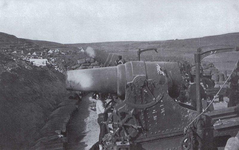 Japan needed to take the port and hunkered down for a siege in July. Japan had seized this port from China rather easily 20 years before. The Russian defenses were first rate, however, and Russian guns on heavily fortified hilltops rained down fire on Japanese ships for quite some time. Russia was able to bring to bear new technology, in a preview of World War I, employing machine guns, bolt-action rifles, and massive howitzers capable of hurling 500-pound shells five miles. This battle featured the kind of trench warfare, including barbed wire, that would be the signature element of the World War I as well.