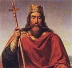 Chlodio's son Merovech was King of the Franks for a decade, from 447 to 457. It was from his name that the dynasty's name comes. His son Childeric I ruled until 482, and his son, Chlodovech I, succeeded him. This was Clovis (left), the first great Frankish king. Clovis was just 15 when he assumed the kingship. At that time, the Frankish capital was at Tournai, in what is now Belgium. Clovis proved a powerful warrior with a magnetic personality, able to inspire his fellow Franks to join him on a campaign of conquest. An early highlight of his reign was the defeat in 486 of the Gallic leader Sygarius, after which Clovis assumed ownership of Gaul. A decade later, the Franks had conquered the Alemanni as well. Clovis had married Clotilda, a Burgundian. She was a Christian, in contrast to the Franks, who at this time were mainly pagan in religious preference. She eventually convinced her husband to become a Christian as well. Following Clotilda's lead, Clovis professed to the Catholic faith. This put him in opposition to some of the other Germanic tribes, who were Christian but were known as Arians because they differed with Catholic Christians on fundamental doctrine. Clovis did, however, have the support of other Catholic kingdoms and of the papacy.